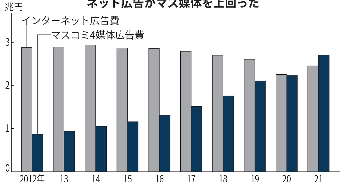 ネット広告費、テレビなど4媒体合計初めて上回る 21年 - 日本経済新聞