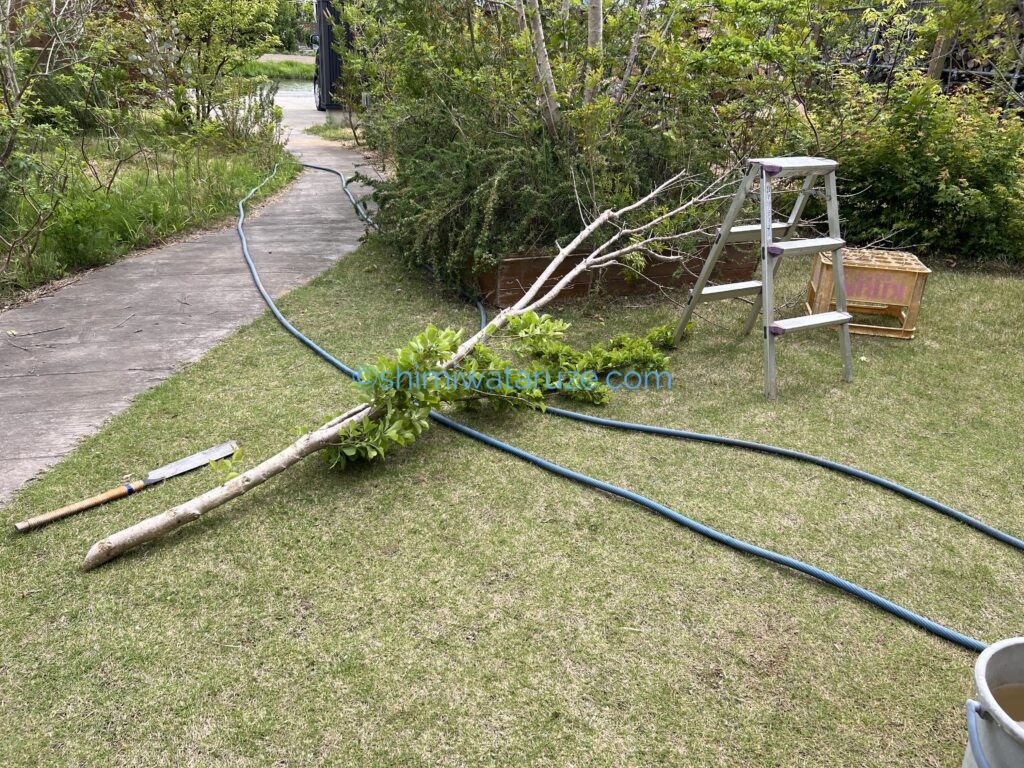 シマトネリコも剪定したのでミナトワークスのガーデンシュレッダーにかけます。
