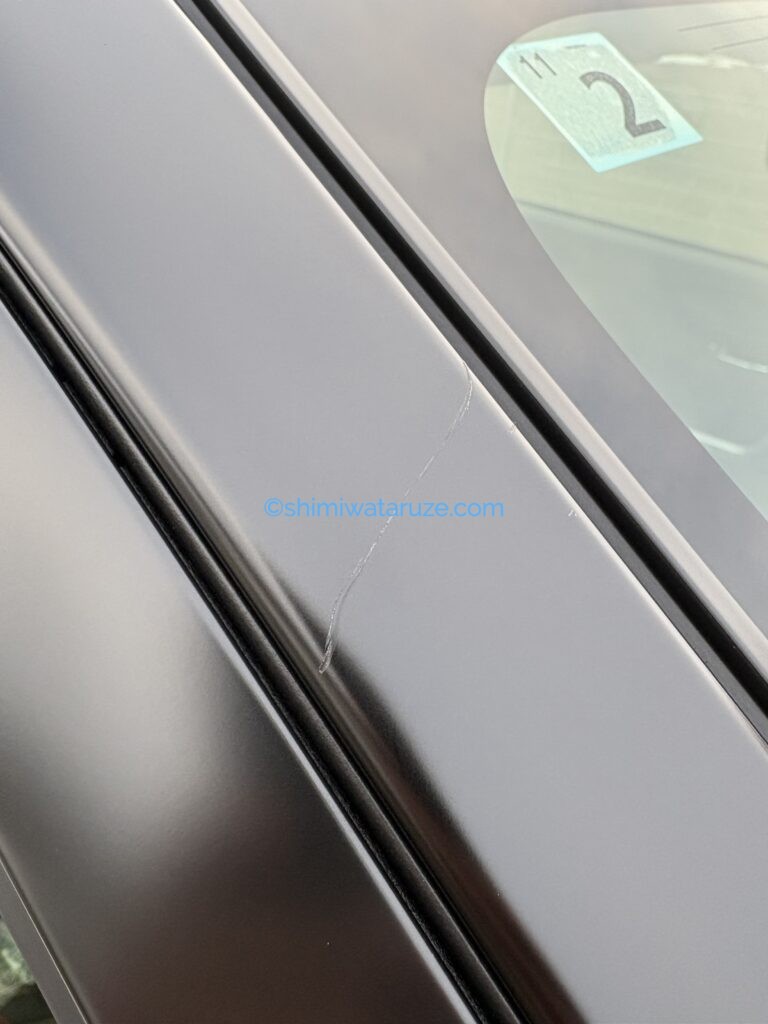 で、ディーラーに到着すると営業マンと店長が浮かない顔をしてて、どうやら納車のための拭き上げをしていたところAピラーモールに傷があるのが見つかったとのこと。