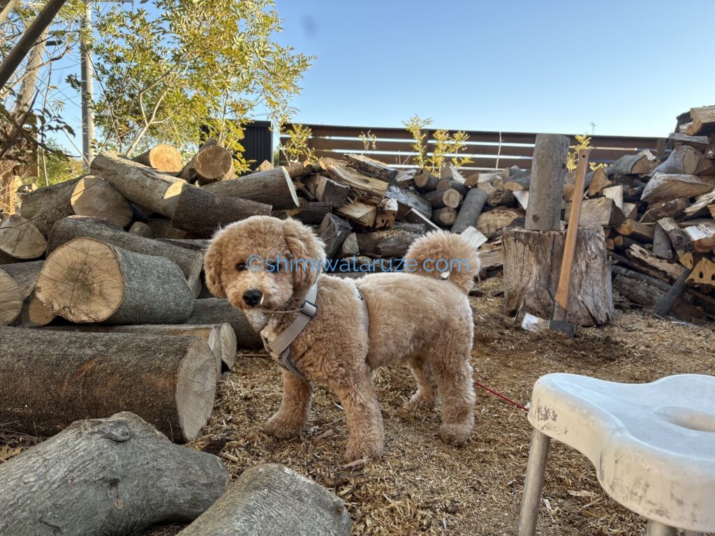 既に薪棚満タンで積み込めない薪は青空保管。