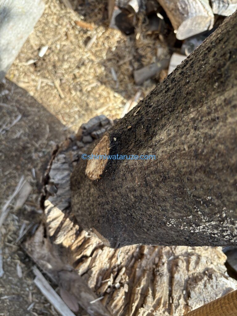 たまに造園業者さんや園芸屋さんから原木を買うこともありますが、良かれと思って(あるいは面倒)か、小さな枝を残したまま納品されることが多いです。